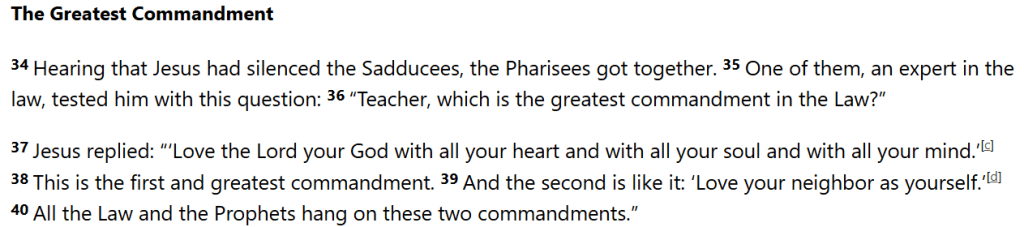 Clue: And we are called to love our neighbours as ourselves [see below].