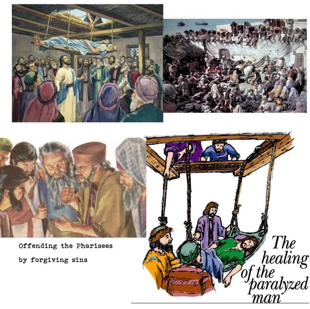 Jesus was in a house teaching. Even religion scholars were there listening. The place was so packed, the entrance was blocked. Some people lowered a paralegic thru the roof… Which is pretty metal. Forgiving sins was the first offense to the religion scholars, because only God could do that. But Jesus stood by it and also healed the paraplegic. (Mark 2:1-12)