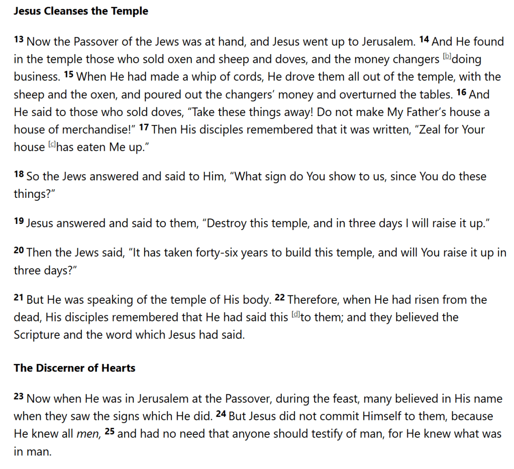 People can be frustrating. Their greed can seep even into what was supposed to be the MOST HOLY PLACE. His own house. I don’t think this is the same temple that was built by King Solomon. 1 Kings 6:38 states, “it took him 7 years” [to build that first temple], not 46 years. How many times do temples have to be lost and destroyed?
