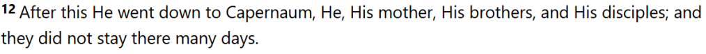 In John 2, I even noted that I don’t know what they did in Galilee after the Wedding. This story in Matt may just be referring to/filling in that short time: